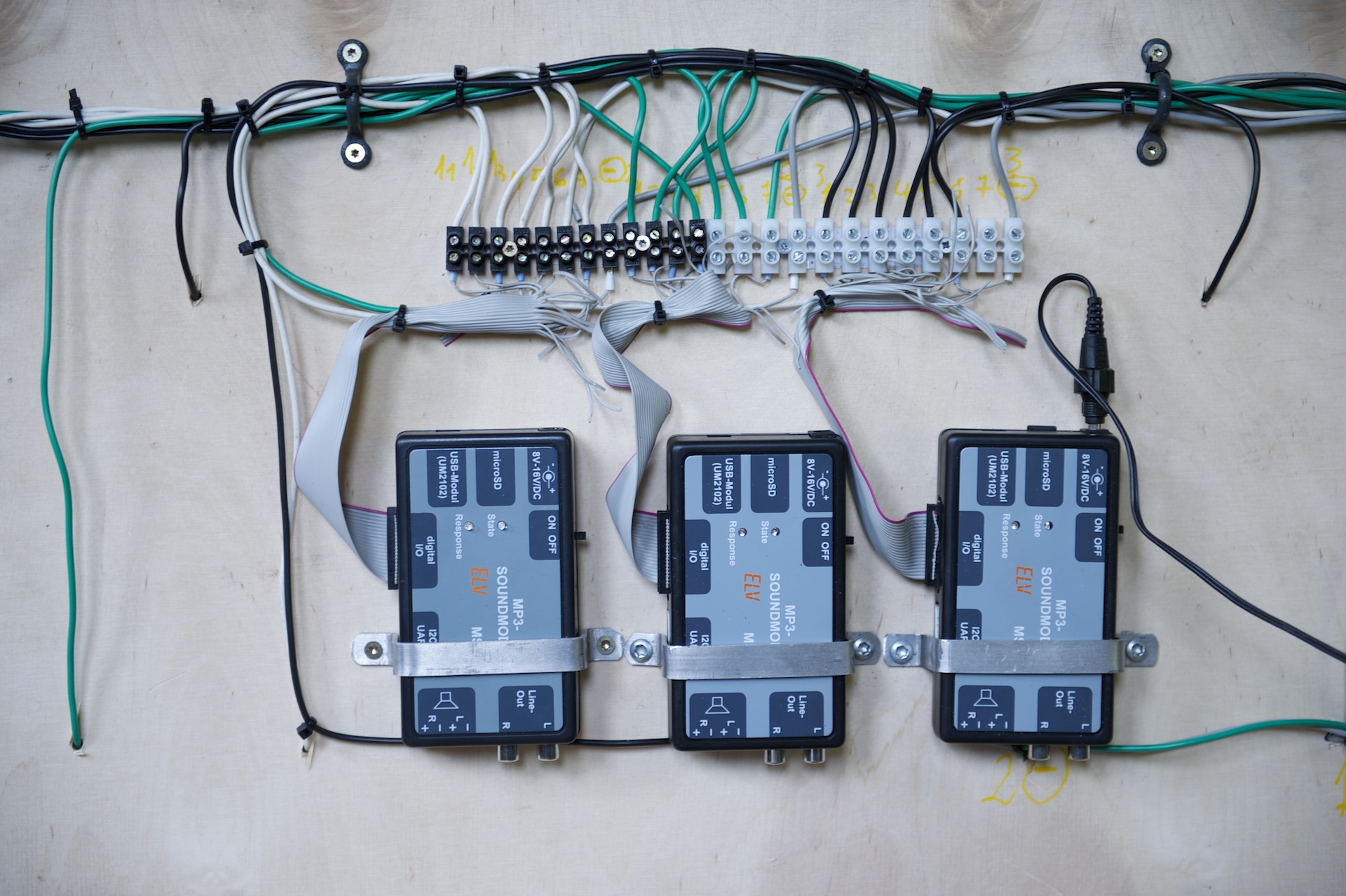 Präsentation – Skulptur in Garten, Bild hängt, Monitor dreht …